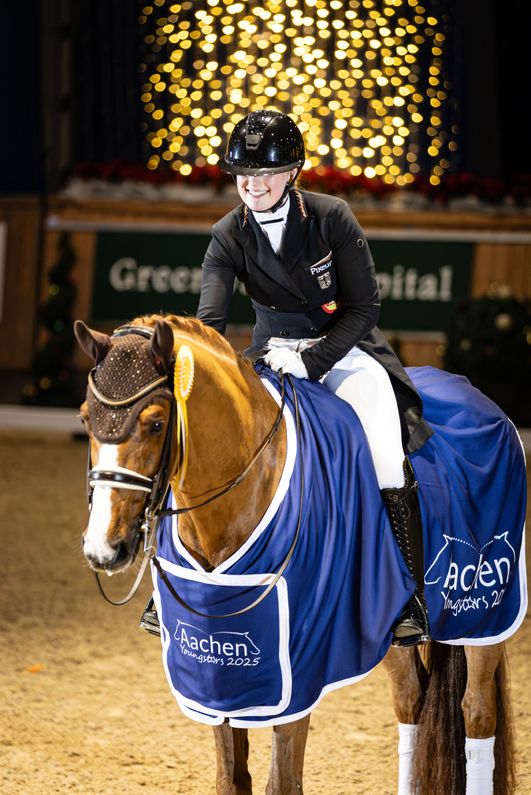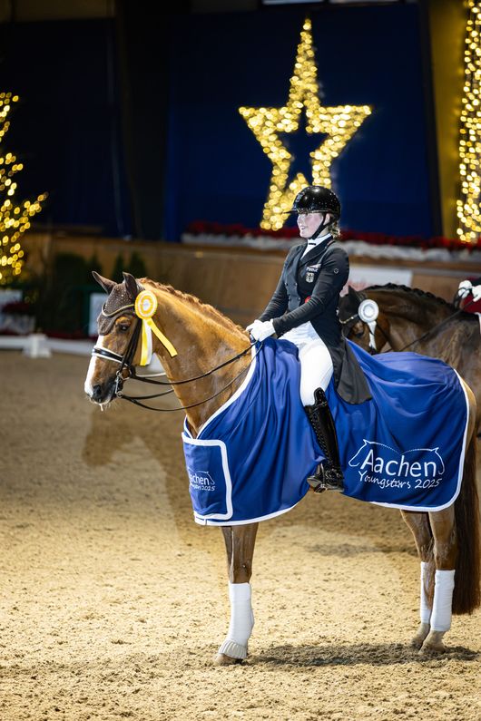 Das Podest komplettierte die dreifache Europameisterin Julie Sofie Schmitz-Heinen @julie_sofie_sh mit ihrer achtjährigen Oldenburger Stute First Date OLD, die von der Jury mit 74,717 % bewertet wurde.